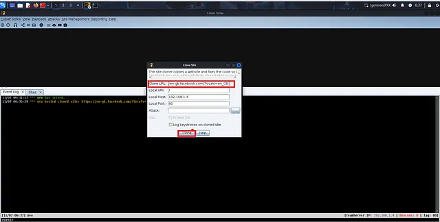 Cobalt Strike’s site cloner dialog — clone URL and host on local IP